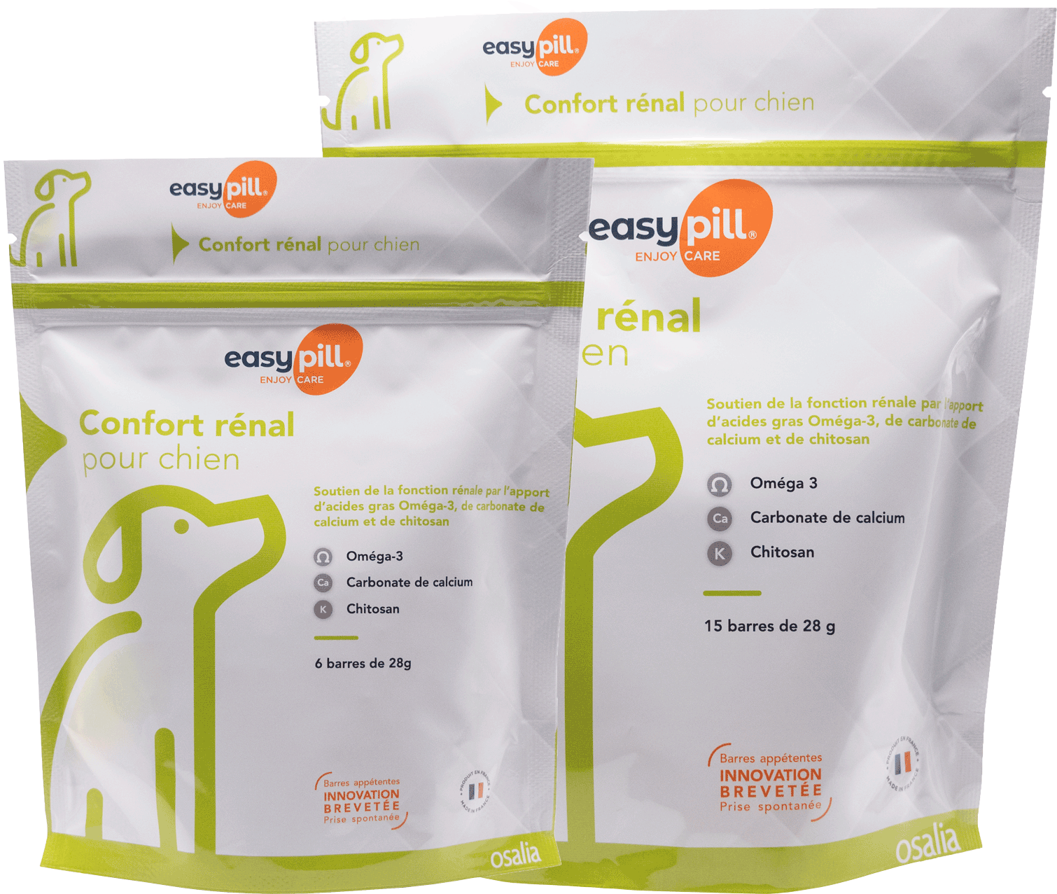 - Easypill Dog Renal Protect supports the renal function thanks to the Omega 3 fatty acid intake which prevents the deterioration of the glomerular filtration rate and in phosphorus chelators (microencapsulated calcium carbonate) that can reduce hyperphosphatemia.