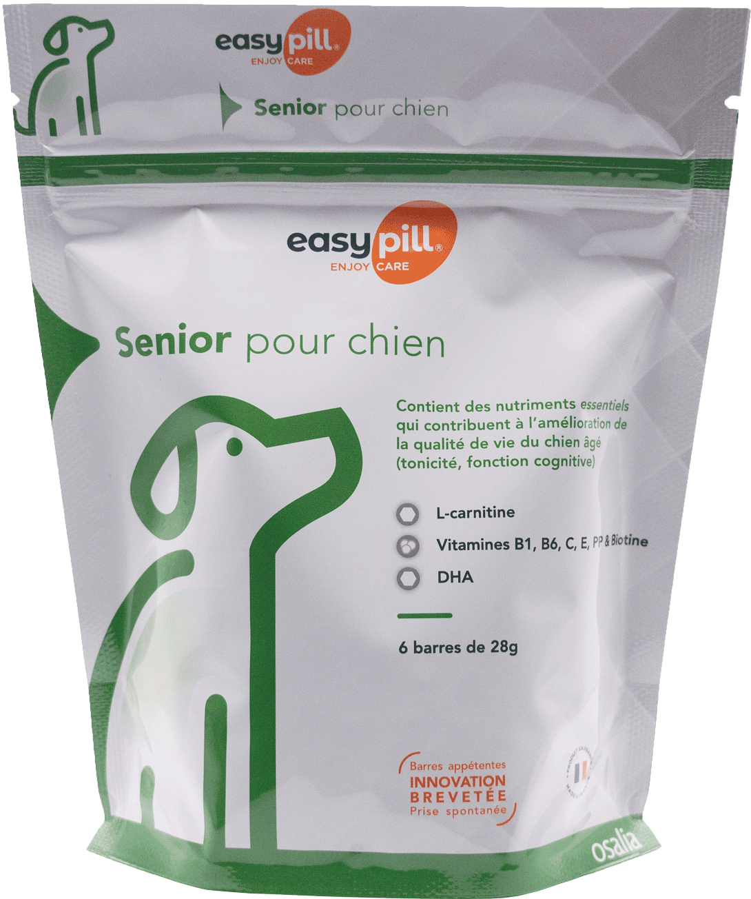 - Easypill Senior Dog contains L-carnitine, vitamins (B1, B6, C, PP) and DHA (docosahexaenoic acid) which contribute to the improvement of the quality of life of the old dog (tonicity, cognitive function).