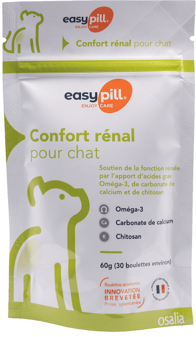 - Easypill Cat Renal protect supports the renal function thanks to the Omega 3 fatty acid intake which prevents the deterioration of the glomerular filtration rate and in phosphorus chelators (microencapsulated calcium carbonate) which reduce hyperphosphatemia.
