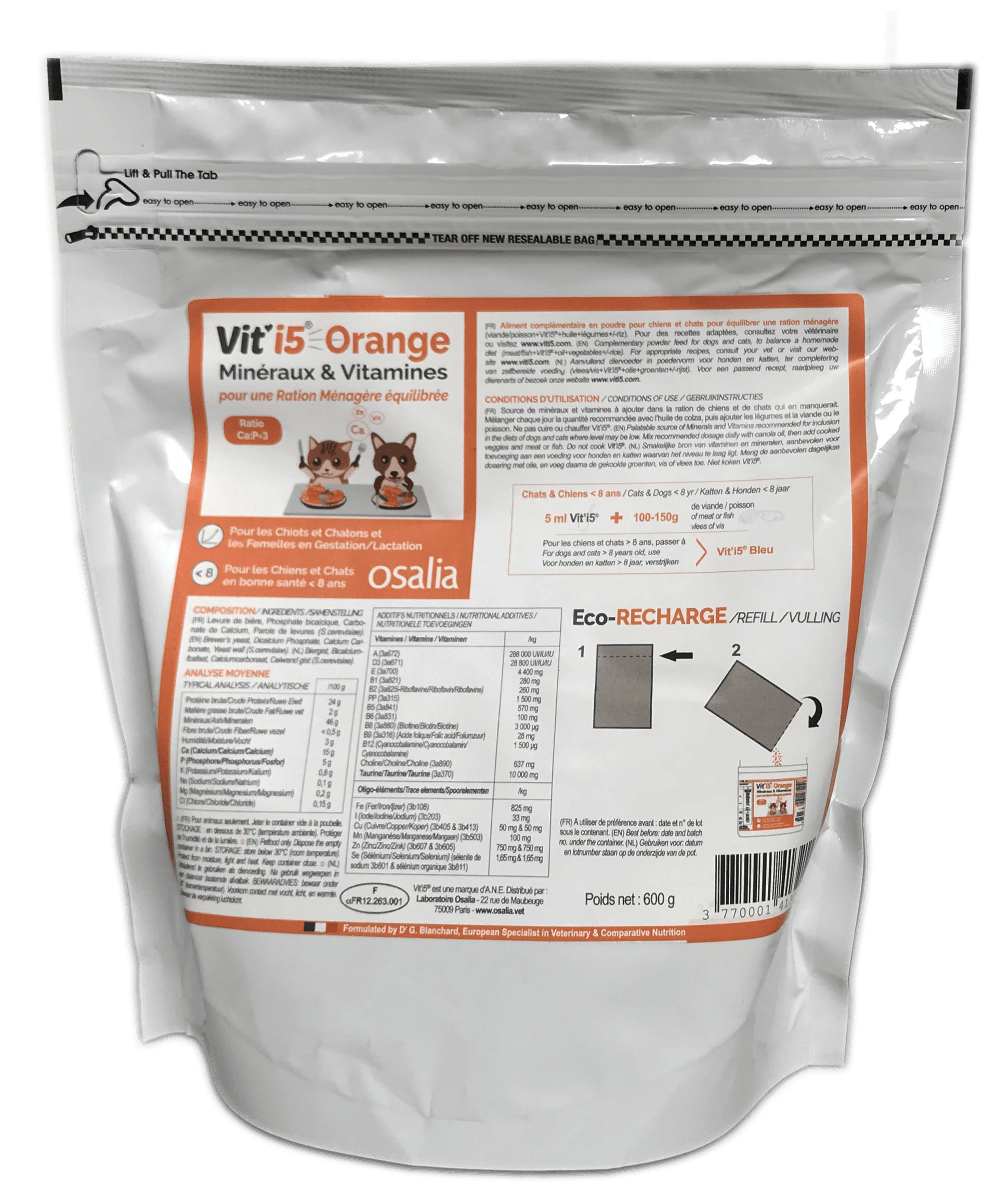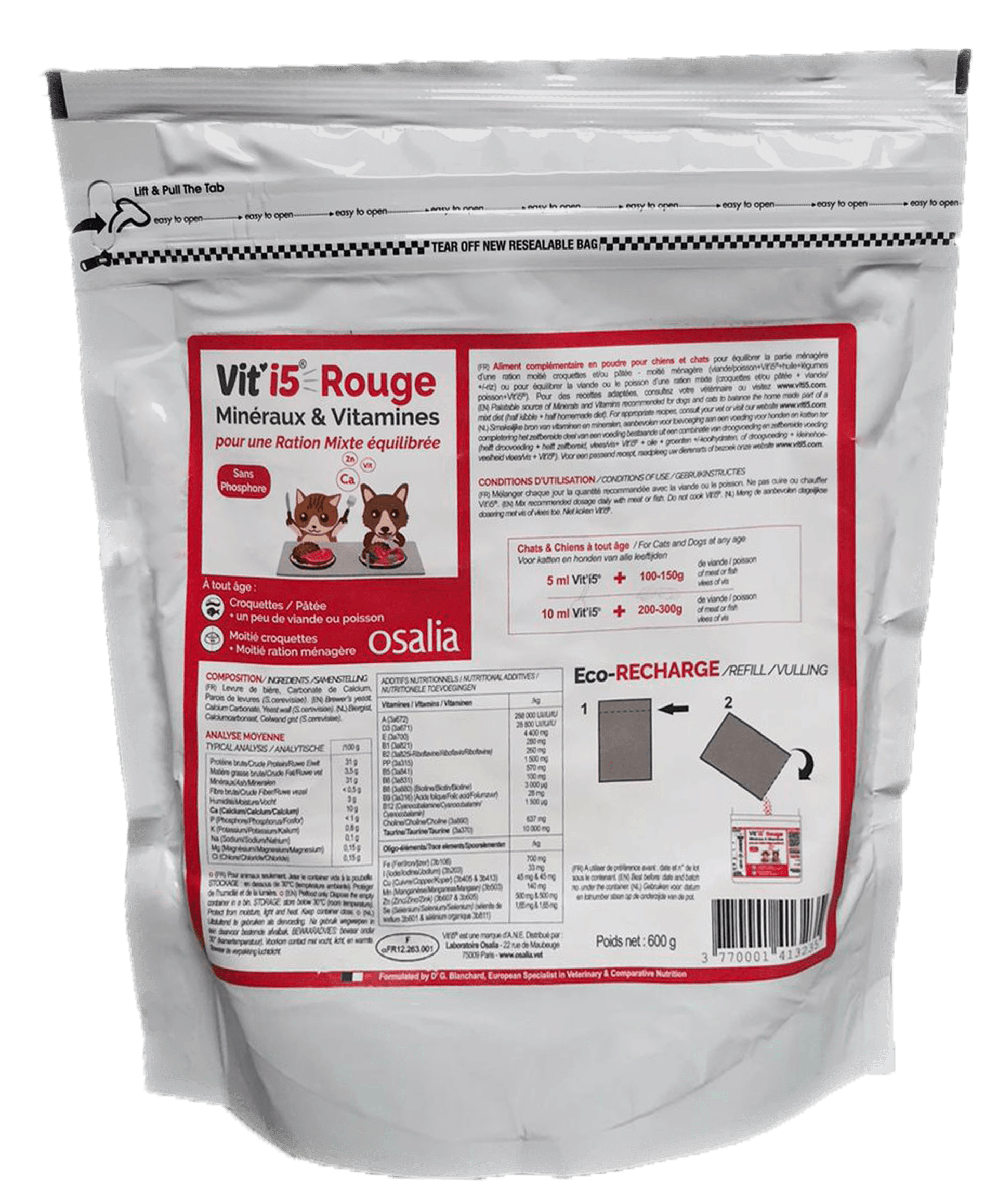 Minerals and vitamins feed recommended for cats and dogs to balance a mixed diet (1/2 kibble - 1/2 homemade diet OR kibble + meat / fish), regardless of their age.